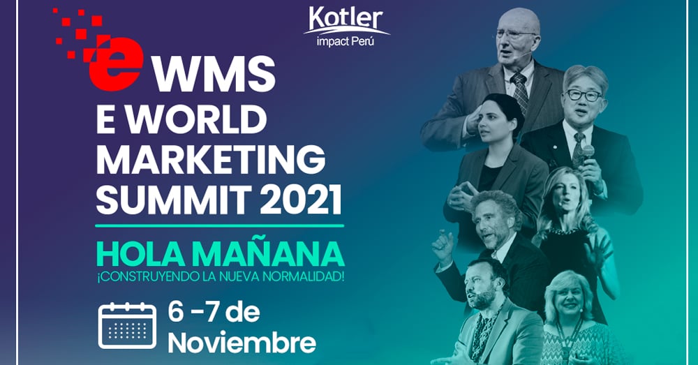 Este próximo 06 y 07 de noviembre, Kotler Impact estará desarrollando el E-World Marketing Summit 2021 desde Perú, a través de una trasmisión en vivo dirigida a una audiencia global de más de 10 millones de participantes en el mundo. Esta cumbre digital reunirá a expositores e innovadores de reconocida trayectoria mundial, para tratar temas relacionados con el marketing como conductor para el cambio social.