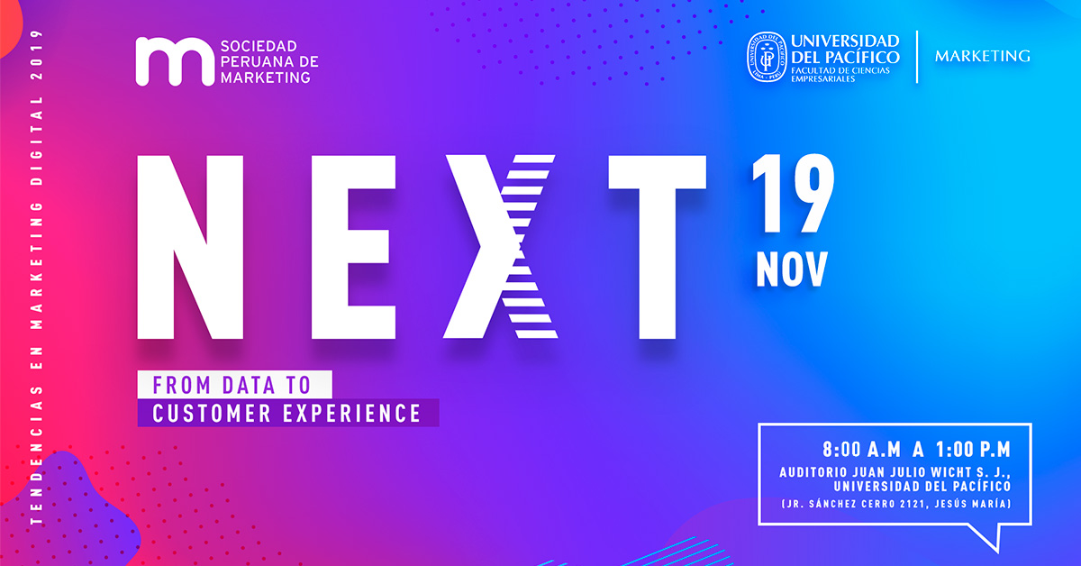 En ese sentido, la Sociedad Peruana de Marketing llevará a cabo la tercera edición del “Next: From Data to Customer Experience” en donde se presentarán tendencias en tecnología e innovación para mejorar la experiencia del consumidor con el uso de la data. Además, se mostrarán los próximos retos y desafíos que presentan los profesionales del marketing y cómo una simple información puede servir para desarrollar grandes iniciativas.