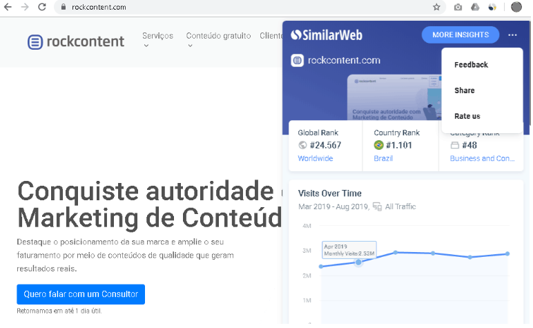 ¿Sabías que puedes instalar una extensión en Google Chrome? Te lo hace más fácil, mientras navegas puedes visualizar los datos. Y si quieres ahondar más dale clic al botón More Insights.