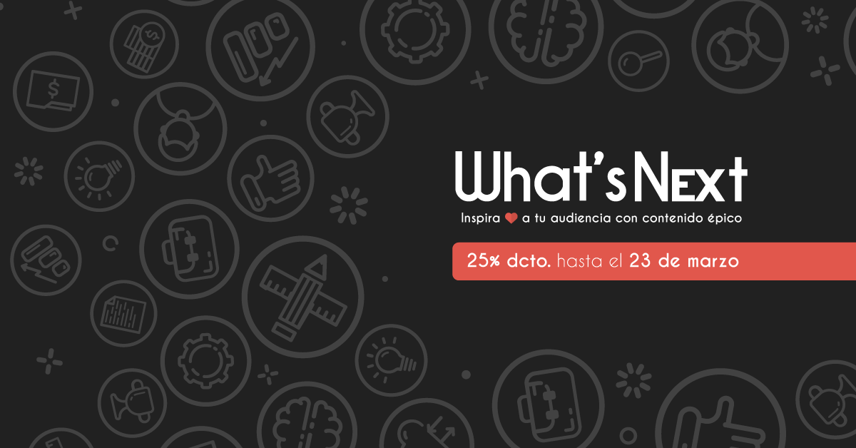 What’s Next: Inspira a tu audiencia con contenido épico, se llevará a cabo el 05 de abril en el Prisma Tower, Magdalena. Adquiere aquí tu entrada con un 25 % dcto. hasta el 23 de marzo: http://whatsnext.digital