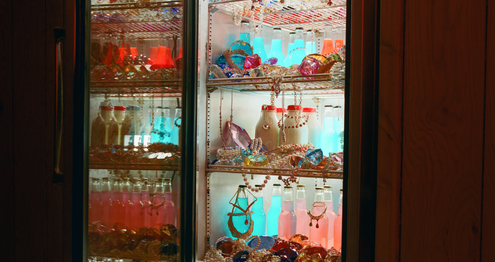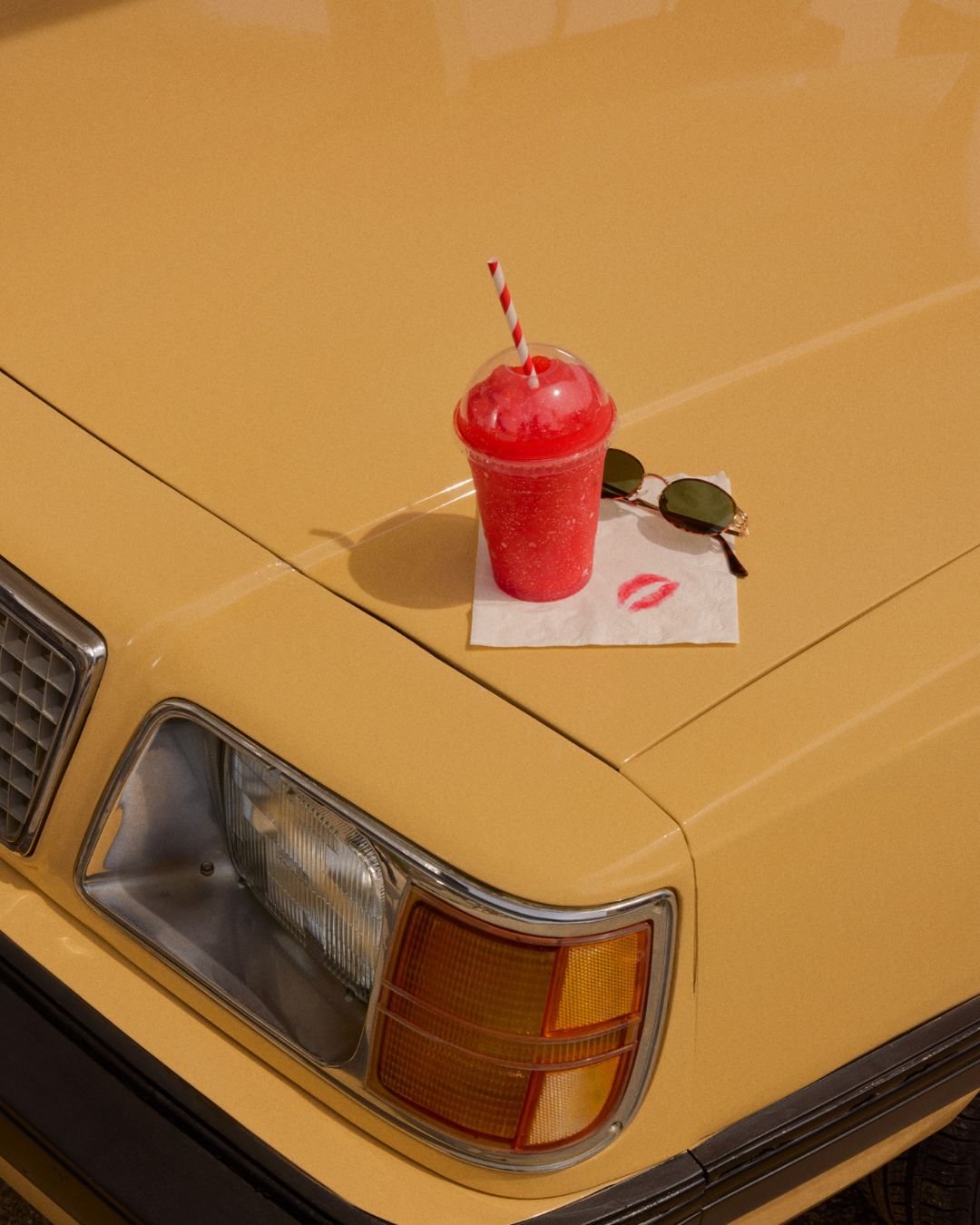 El diseño del lugar busca recrear una estética inspirada en el imaginario creativo de la artista. Entre los elementos del espacio figuran automóviles vintage intervenidos con brillo, estaciones para preparar granizados personalizados y diferentes zonas pensadas para fotografías.