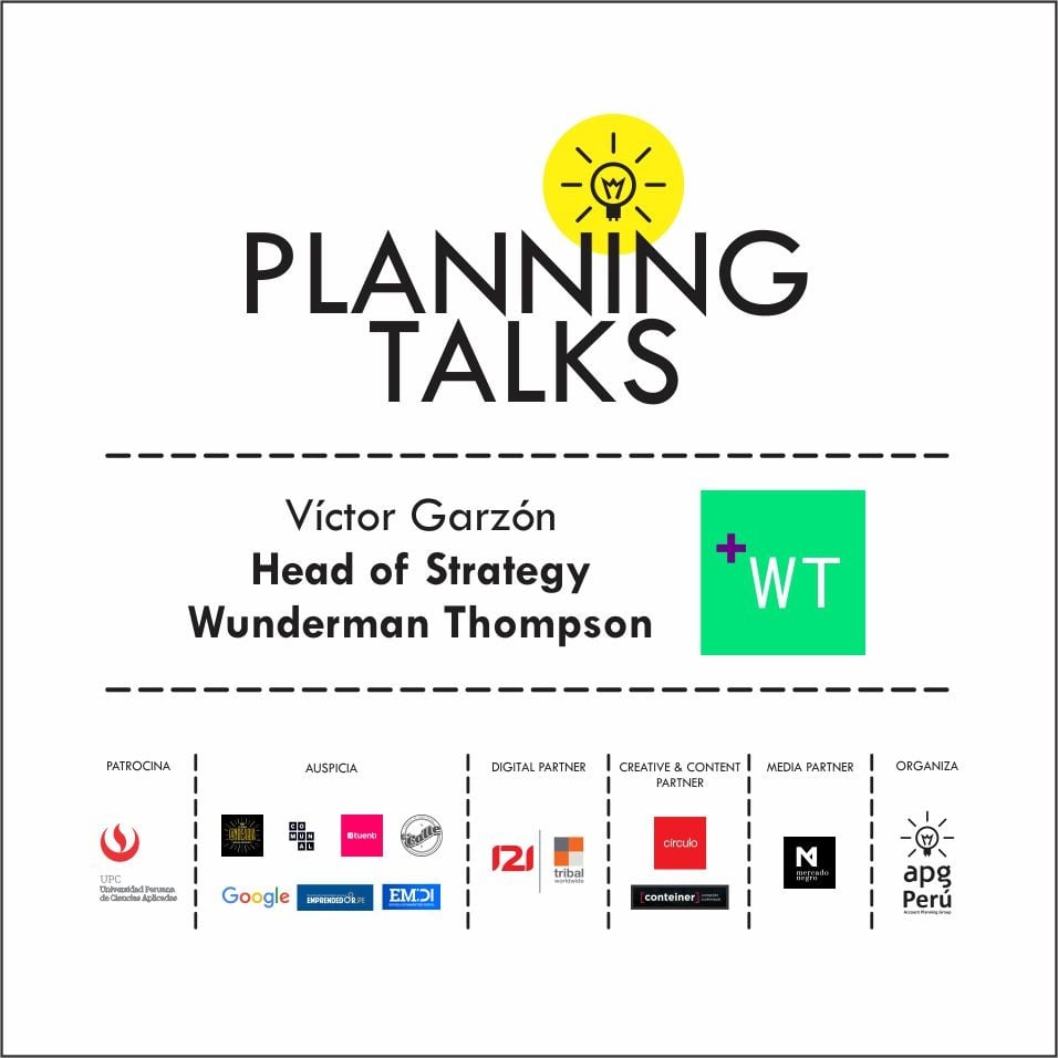Todo se encuentra listo para la segunda edición del año de Planning Talks, y en esta ocasión se tendrá como invitado especial a Victor Garzón, Head of Strategy Wunderman Thompson Perú.