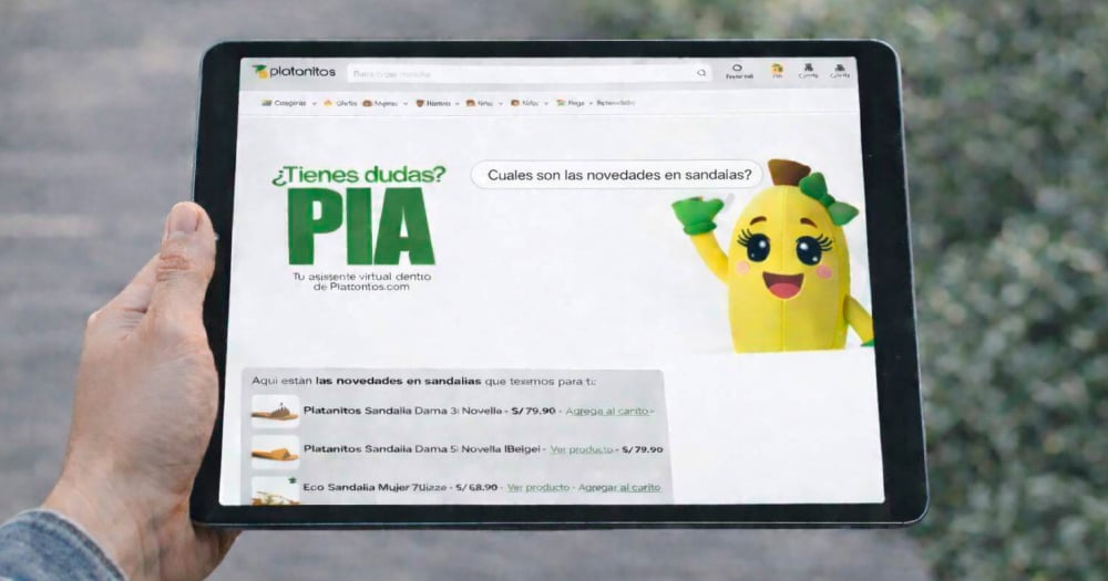 PIA, el asistente virtual lanzado por Platanitos, utiliza reconocimiento visual para identificar calzado mediante fotos y agilizar la verificación de stock en tiempo real.