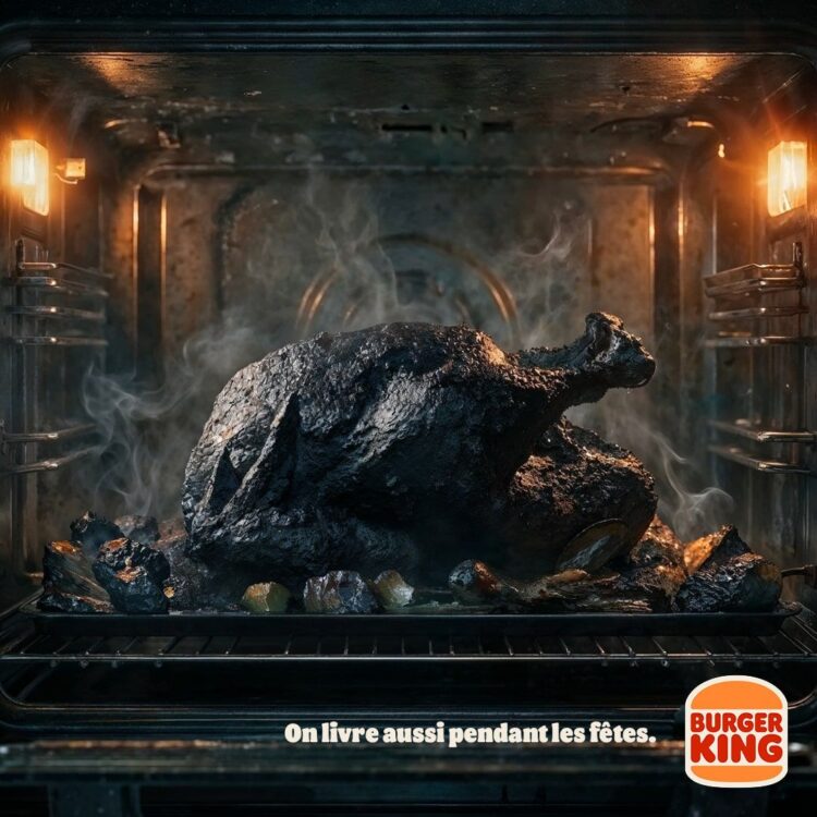 Tal y cómo lo vimos en agosto con KFC, ha surgido una nueva campaña visual que recurre a los accidentes de cocina para posicionar a otra cadena como la mejor opción. La propuesta de Burger King Francia, aunque esta vez pone foco en los que ocurren en temporada navideña, también destaca a su menú como el “salavador” de la esperada cena.