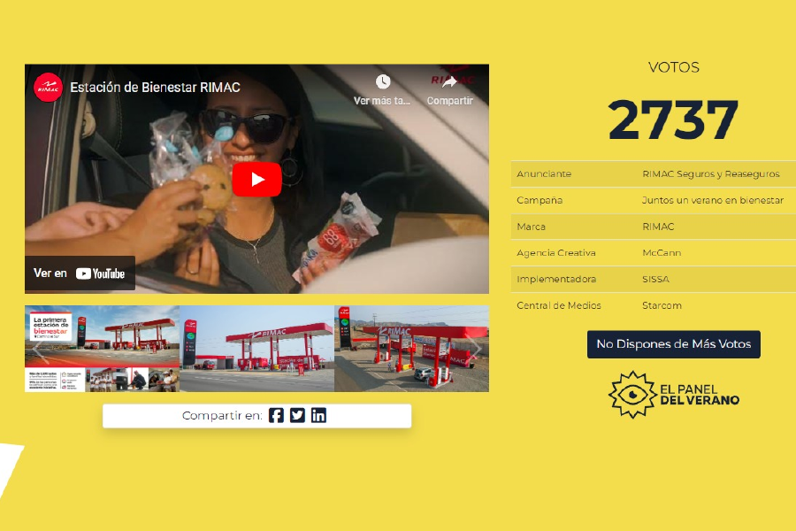 Completando el Top 3 de este importante concurso, se encuentran Rimac Seguros en el segundo lugar con 2,737 votos, gracias a su campaña “Juntos un verano en bienestar”, y La Positiva Seguros en el tercer lugar con 1,793 votos, destacándose por su acción “El lado positivo del verano”.
