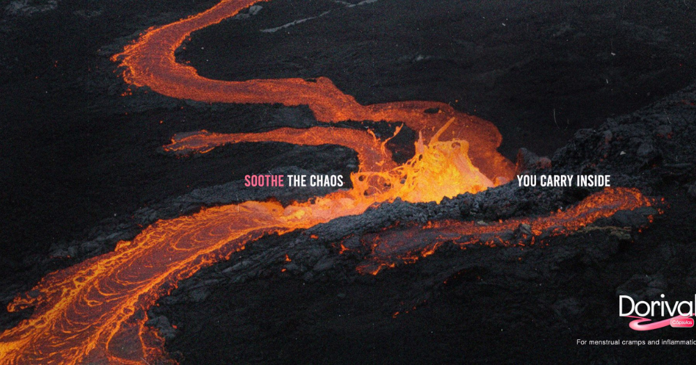 Bajo el lema “Calma el caos que llevas dentro”, la propuesta visual de una marca de pastillas menstruales busca posicionar su producto como una solución frente al dolor intenso que puede provocar la menstruación y que, en muchos casos, suele ser minimizado.