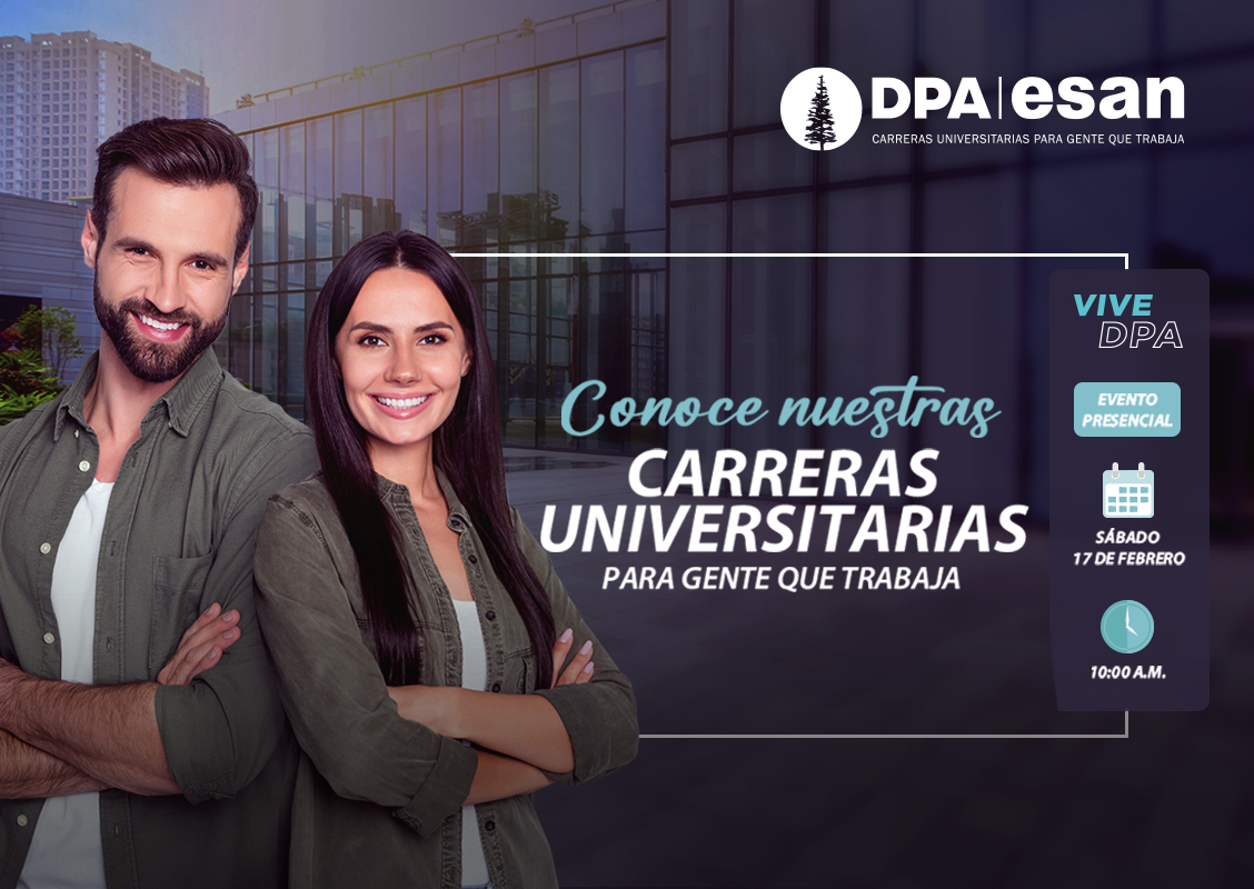 Los interesados en desempeñarse en cargos de alta gestión en marketing, publicidad y actividades comerciales pueden recibir información en el evento VIVE DPA que se realizará el sábado 17 de febrero a las 10: 00 a.m. en el campus de la Universidad ESAN. Los participantes podrán recorrer su futura universidad, participarán del networking, masterclass y conocerán a sus próximos compañeros de estudios y profesores.