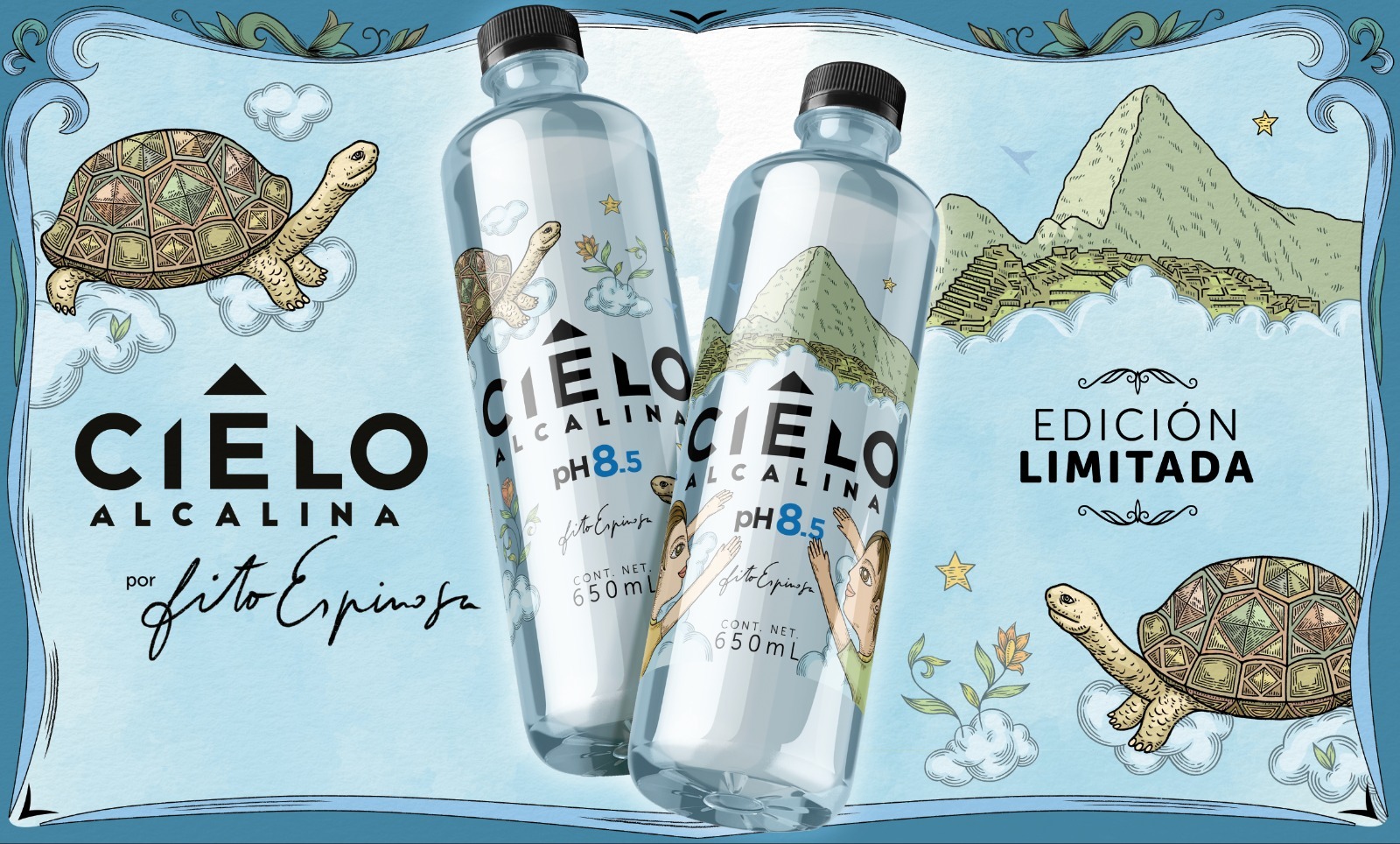 Cielo acaba de lanzar una nueva edición limitada de Cielo Alcalina junto al artista plástico Fito Espinosa, quien ilustró las nuevas botellas inspirándose en Machu Picchu y la belleza natural de las Islas Galápagos, en Ecuador.