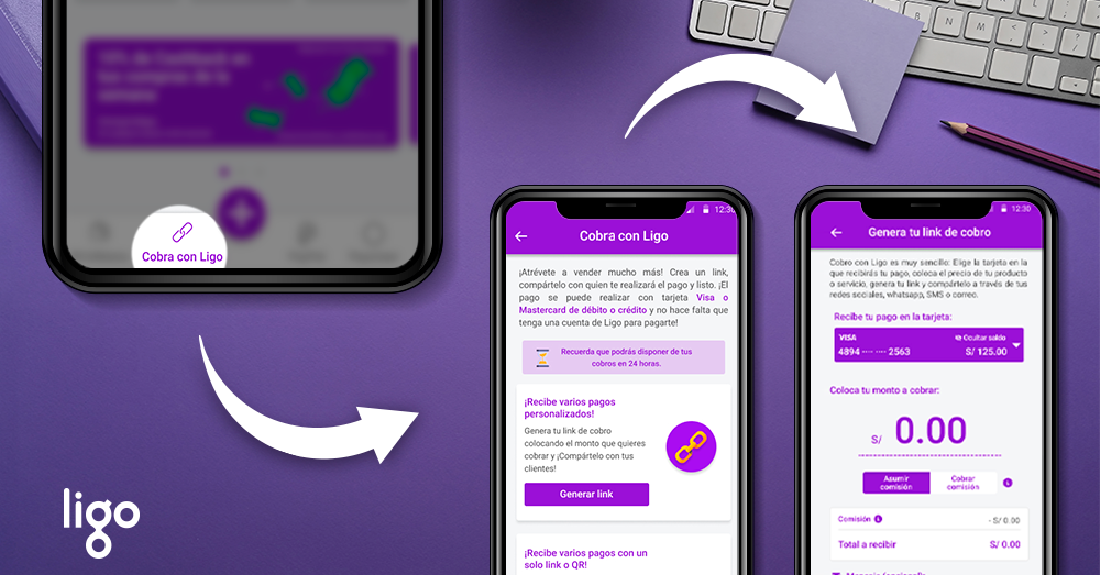 Ligo es una super app financiera completamente gratuita que sirve para realizar diferentes operaciones, como compra y venta de dólares, envío de dinero al extranjero, compras en miles de establecimientos de forma virtual o física, pago de servicios, entre otras acciones. Dentro de estas funciones, destaca su Link de Pago, denominado Cobra con Ligo, el cual permite recibir transferencias con tarjeta de crédito y débito.