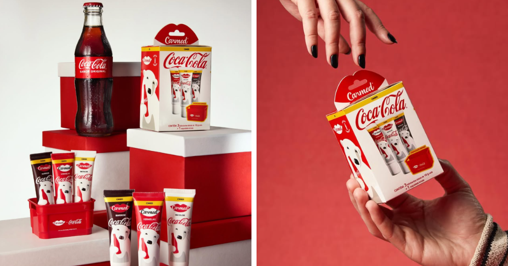 La famosa gaseosa se asoció a Carmed, marca brasileña de hidratantes, para crear una edición limitada de bálsamos labiales que tienen toda su vibra y aroma. Esta se compone de tres distintas presentaciones, siendo una en tono incoloro, otra en rojo y una en marrón, pero todas diseñadas para dejar una sensación de suavidad y frescura en los labios.