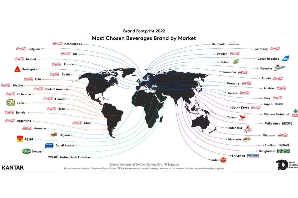 El éxito de Coca-Cola parece no tener fin. En la décima edición del estudio Brand Footprint, realizado por Kantar Worldpanel, la marca se posicionó como la más elegida en Latinoamérica, manteniendo el podio del año pasado. Sin embargo, no solo fue en el continente latino, sino que fue elegida como la mejor a nivel global.