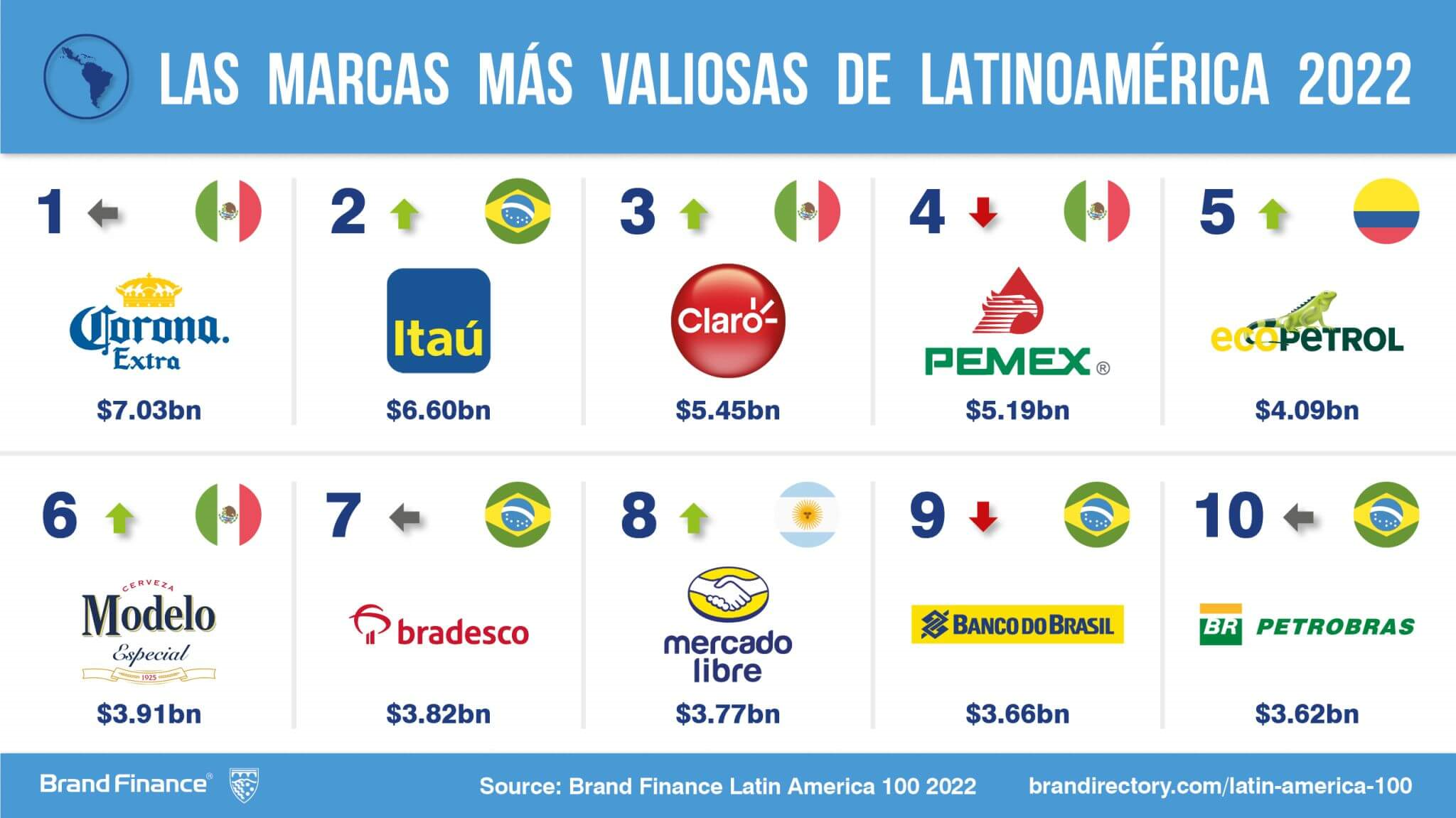 ¿Cómo va la evaluación de marcas cuando hablamos de Latinoamérica? El último informe de Brand Finance hace un ranking de las marcas más valiosas en Latinoamerica. Según la entidad, las marcas bancarias, de retail y de energía dominan en esta parte del mundo. La lista es liderada por Itaú el banco brasileño con un valor de 8,7 millones de dólares. La evaluciacón consideró la fortaleza de marca y el valor de las mismas. Conoce los resultados.