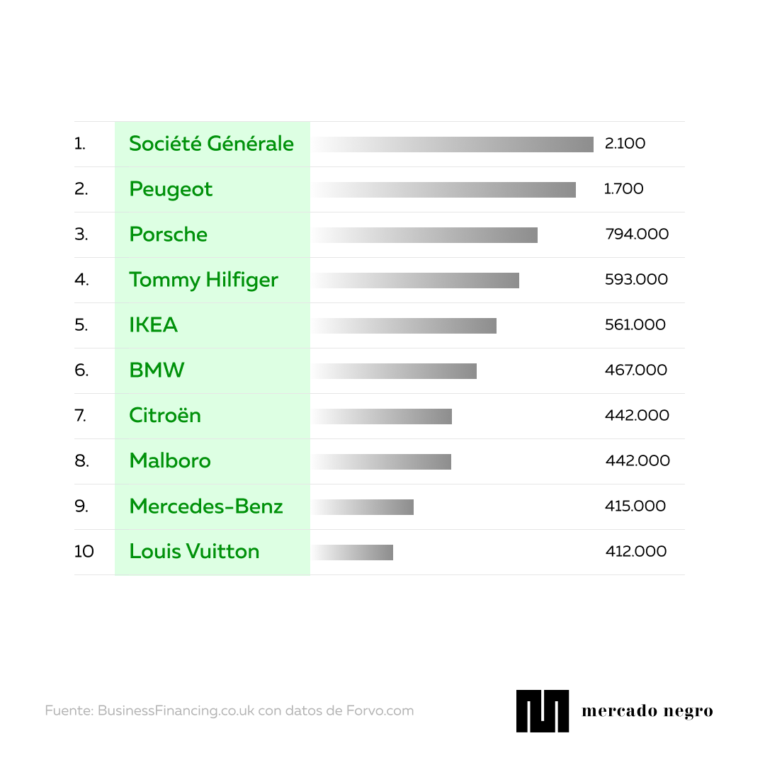 En tanto, la cuarta posición la tiene Tommy Hilfiger, con 593.000 escuchas que lo avalan. Asimismo, el quinto lugar lo tiene la marca sueca IKEA que obtuvo 561.000. El listado sigue con BMW (467.000), así como Citroën y Marlboro que empatan con 442.000.
