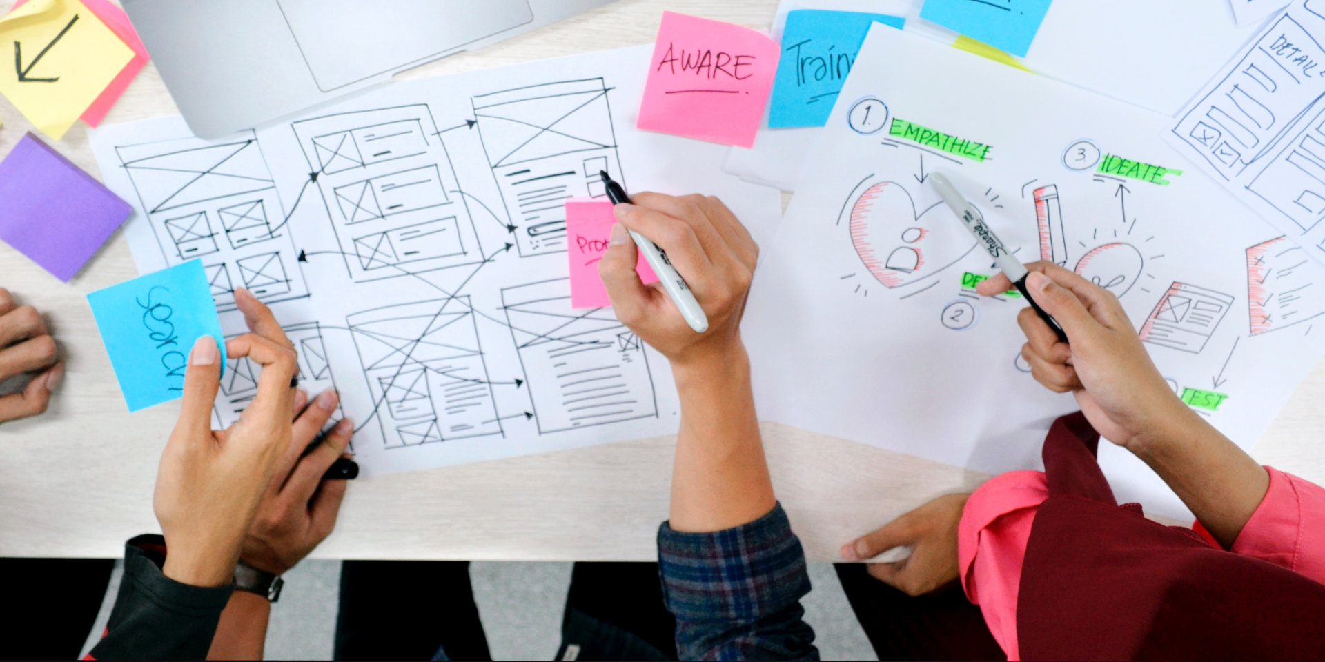 El desing thinking plantea que ante un problema o proyecto, quien lo emprende debe pensar primeramente en la empatía a lo requerido o solicitado para a partir de eso generar la inspiración y las ideas que puedan configurar un prototipo. Se trata de una ruta que es la misma que normalmente sigue un diseñador para pensar y presentar un proyecto creativa.