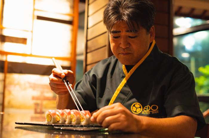Desde hace casi 20 años, Edo Sushi Bar viene cautivando el paladar de comensales que confían en su carta, la cual ha servido como referencia para otros negocios. “Javier Matsufuji, chef fundador de Edo Sushi Bar, creó el maki acevichado hace más de dos décadas, y su éxito ha sido tal que ha influenciado a numerosos restaurantes debido a su inigualable salsa acevichada”, sostiene Jorge Matsuda, chef corporativo de Grupo Edo.