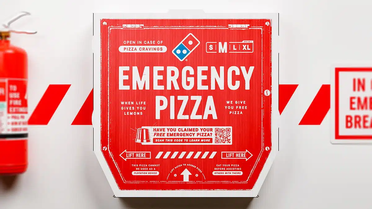 “Es una verdad universal que una pizza gratis puede mejorar cualquier mala situación. Esta es la razón por la que estamos brindando a todo el mundo la posibilidad de conseguir gratis una pizza de emergencia. Ya sea porque un pájaro te robó el sándwich o porque te tropezaste, zamparte una pizza gratis te hace ver definitivamente las cosas de otra manera”, indicó Alex Barry, senior arte director de WorkInProgress, la agencia que rubrica la última campaña de Domino’s.