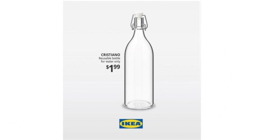 Una de ellas es Ikea. El fabricante sueco de muebles y artículos para el hogar ha lanzado una botella reutilizable «solo para agua» que ha bautizado con el nombre de «Cristiano» y que ha presentado a través de sus redes sociales a un precio de 1,99 dólares.