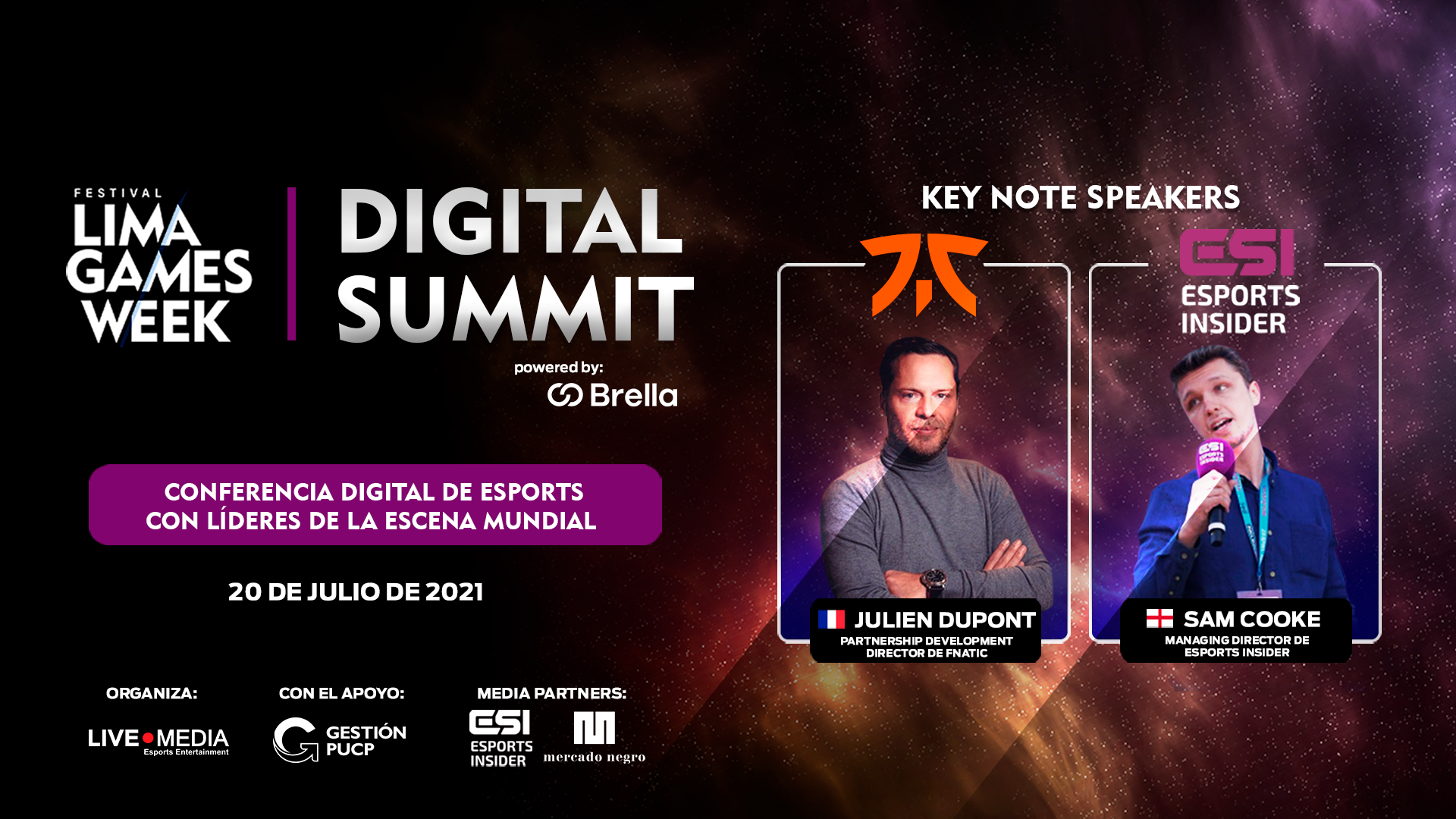 Este martes 20 de julio se llevará a cabo la primera edición del Lima Games Week Digital Summit, una conferencia de eSports management que reúne a referentes de la escena mundial de los eSports, como el francés Julien Dupont, Partnership Development de Fnatic, y el inglés Sam Cooke, Managing Director de Esports Insider.