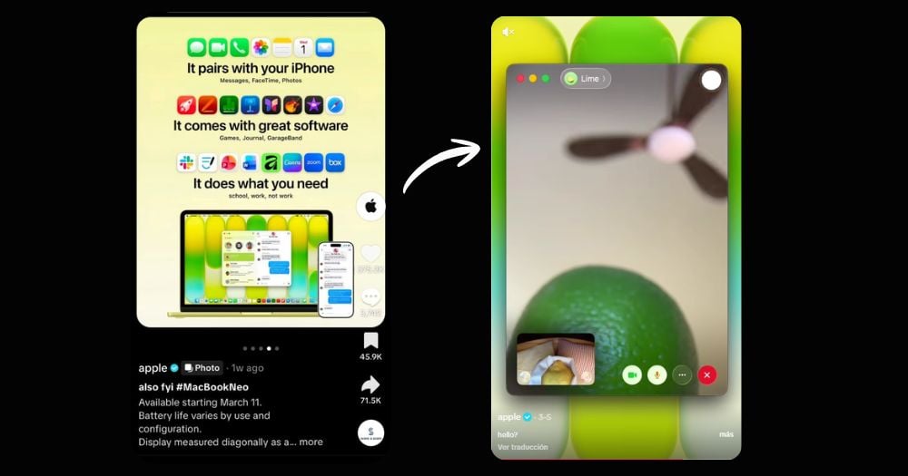 Durante décadas, la marca de la manzana mordida se ha caracterizado por manejar su comunicación de manera pulcra y controlada. Sus publicaciones consistían en videos minimalistas con tomas técnicas de sus productos. Sin embargo, su nueva MacBook Neo llegó para cambiar todo el marketing tradicional de la marca.