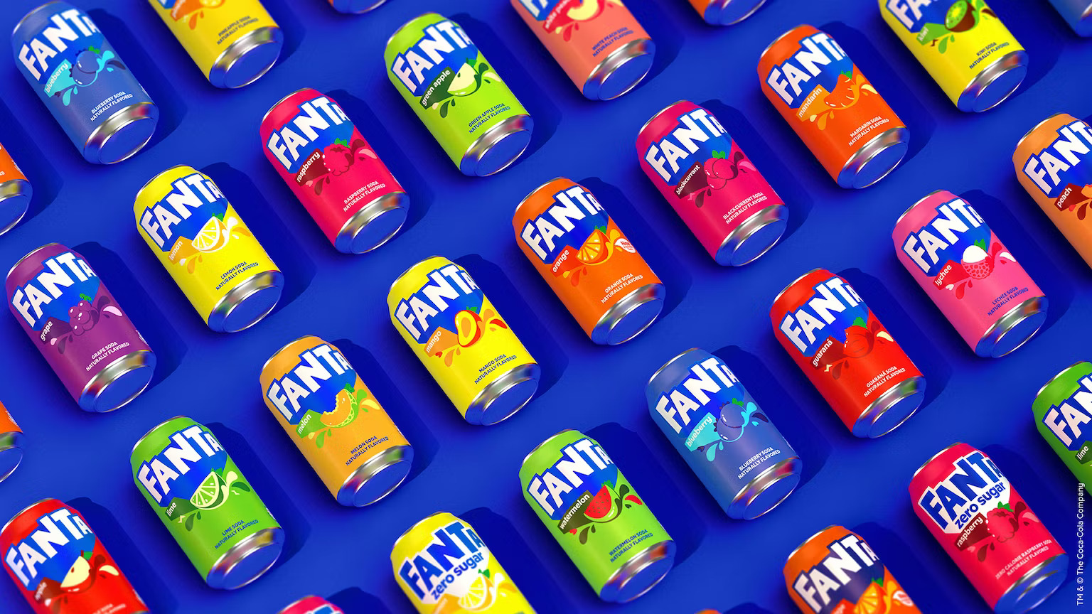 La nueva paleta de colores se eligió para destacar las diferentes opciones de Fanta, una serie de gráficos afrutados indican los distintos sabores que aparecen en las latas.