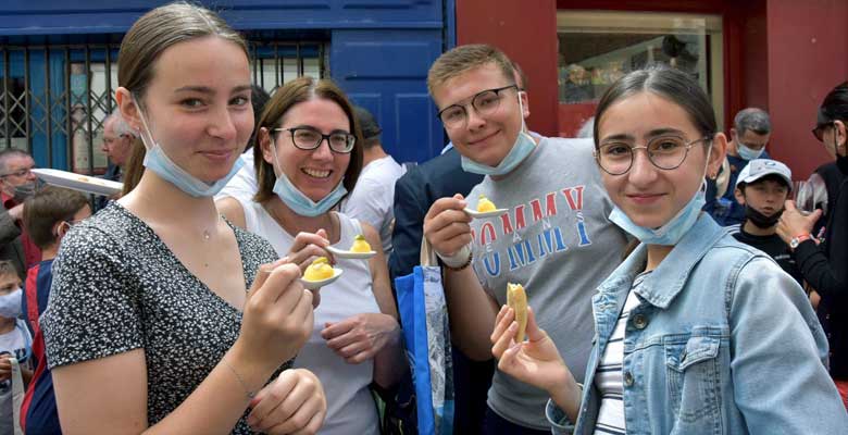 Entre las degustaciones, los invitados disfrutaron de pisco sour, que se distribuía en un counter de la marca sectorial Pisco Spirit of Perú, además de otras propuesta culinarias peruanos preparados por la pareja de chefs iqueños Luis y Gisella Ramírez, quienes son dueños del nuevo establecimiento gastronómico en Saint-Julien-du-Sault.