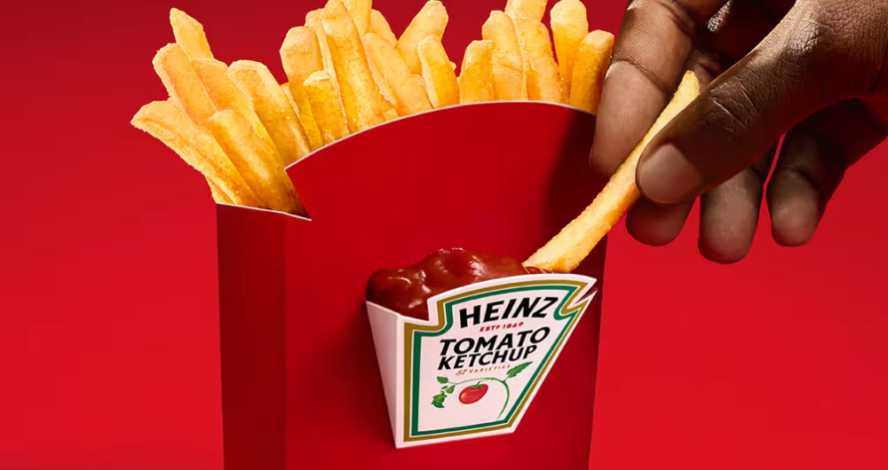 Heinz decidió intervenir el hábito incómodo de comer papas fritas fuera de una mesa, con sobres de ketchup que se derraman, envases improvisados o, incluso, renunciando al dip. Para resolverlo, la compañía lanzó una nueva caja que integra un compartimiento especial para el ketchup, pensada para quienes comen en el auto o mientras caminan por la calle.