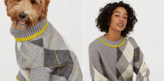 Las marcas no podían quedarse atrás, por ello, se han sumado a la tendencia pet friendly y en esta ocasión, H&M propone vestir a los millennials y a sus mascotas en una misma tienda. La cadena sueca de ropa ofrece divertidos conjuntos para mascotas que combinan con las prendas de sus dueños. A través de las redes sociales, los usuarios se han mostrado emocionados por la innovación de esta reconocida marca.