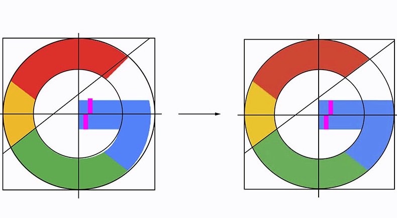 Para el ojo humano puede llegar a ser imperceptible esta asimetría del logotipo de Google, pero la realidad es que lo que parece una “G” perfectamente circular, no lo es.