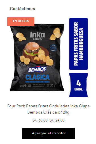 En la actualidad, la caja de 4 unidades de Inka Chips Bembos están en oferta a S/24.