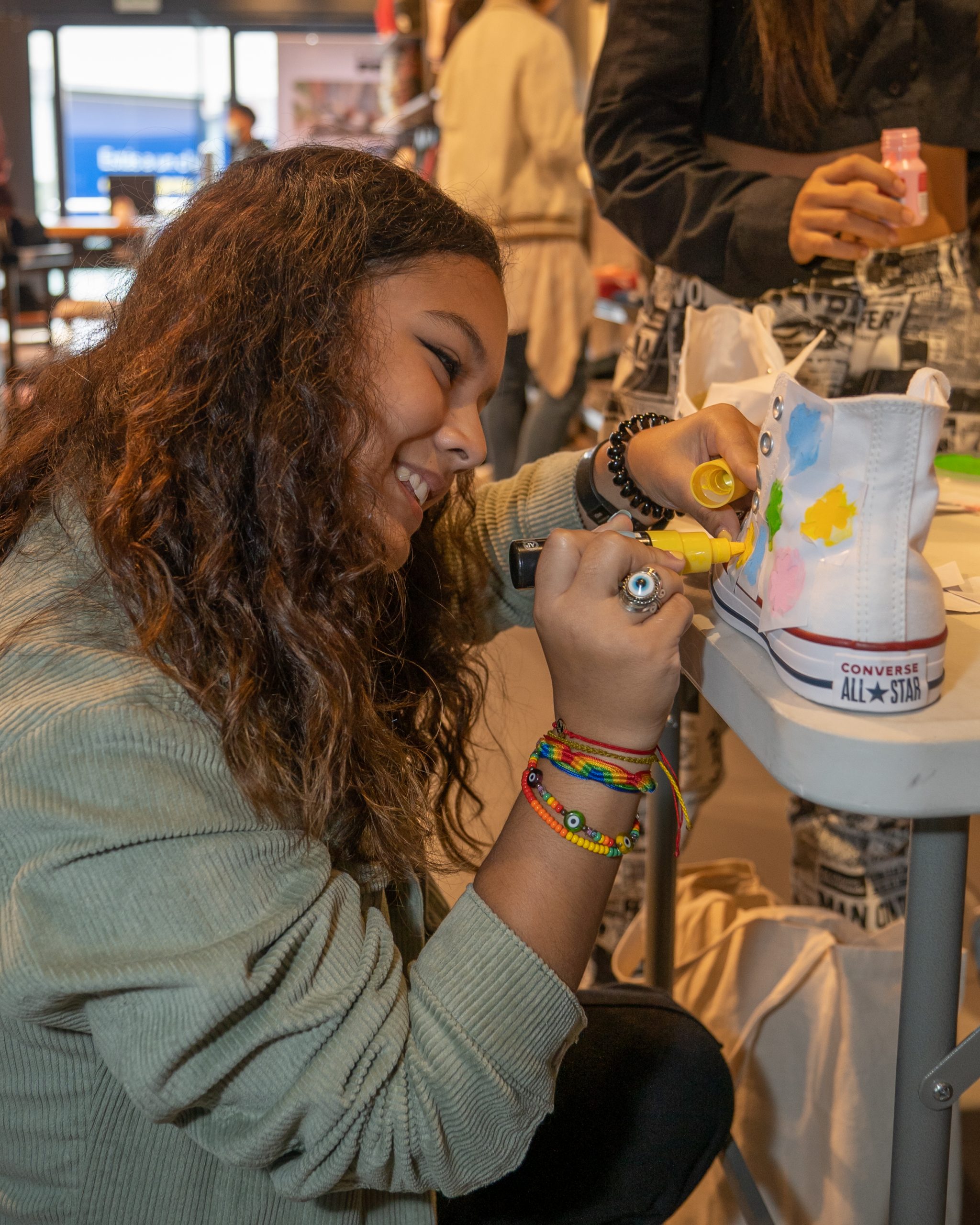 El día sábado y domingo, todas las personas con unas zapatillas Converse tuvieron la oportunidad de acercarse a la tienda de Larcomar e intervenirlas con diferentes accesorios como stencils y pines, logrando darle un estilo propio y super personalizado.