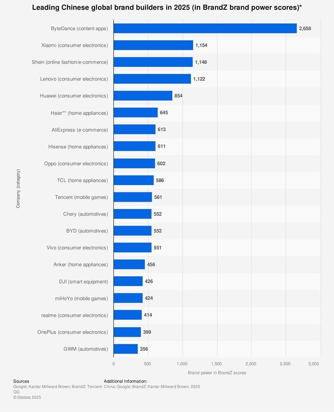 El ranking “2025 Kantar BrandZ Chinese Global Brand Builders Top 50” confirma que las marcas chinas han pasado de ser opciones secundarias a convertirse en referentes de valor para millones de consumidores.