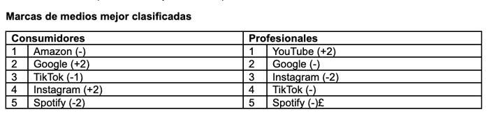 Para los especialistas en marketing, YouTube ha saltado a la cima de la lista. Sus datos de confianza han mejorado un 6 % con respecto al año pasado. Esto contrasta, de nuevo, con la opinión de los consumidores, que no la incluyen en su Top 5. Así se desprende del informe «Kantar Media Reactions 2023».