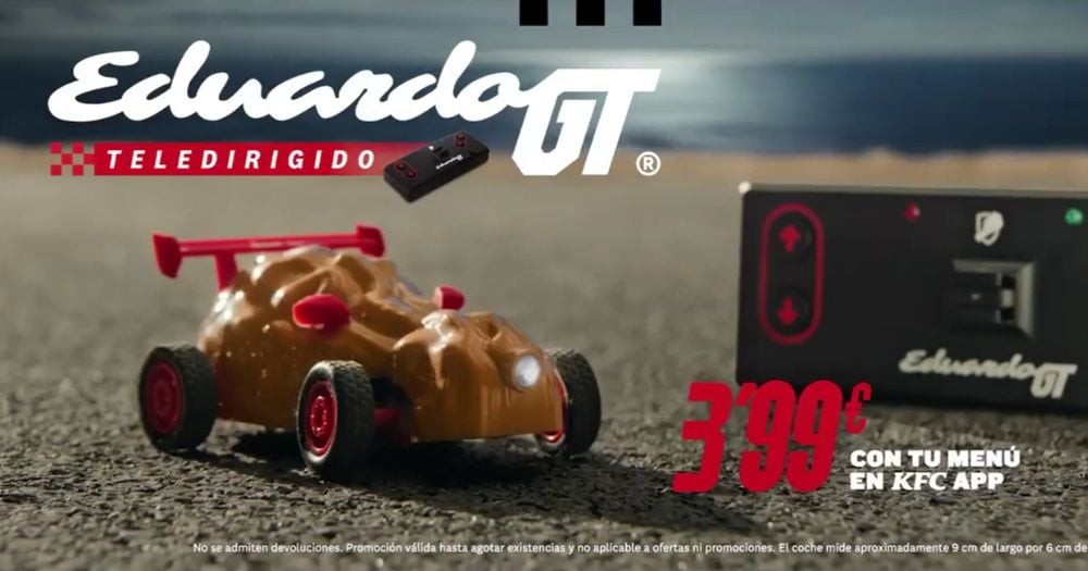 KFC España trabajó de la mano con la agencia creativa PS21 para desarrollar la campaña que promociona Eduardo GT, un deportivo miniatura que no busca competir con juguetes de tecnología avanzada, sino capturar la atención con un concepto absurdo.