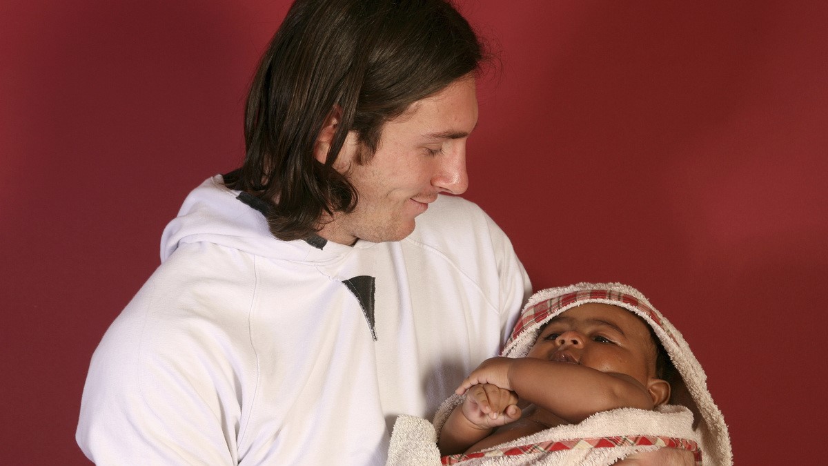En 2007, un joven Lionel Messi posó con un bebé en el vestidor del Camp Nou para un calendario benéfico.