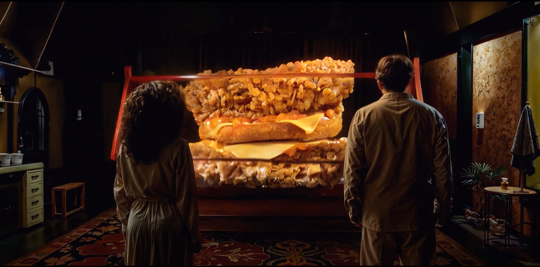 El lanzamiento incluye cinco piezas en formato online, TV lineal, VOD, DOOH y redes sociales: una litera, frascos de perfume, unas vacaciones de verano, un reloj e incluso el logotipo de KFC se transforman en Zinger Double Downs. Los videos fueron realizados combinando técnicas de producción clásicas con tecnología de vanguardia para crear un trabajo lleno de personalidad, que combina imágenes de acción en vivo, animación y elementos generados por inteligencia artificial en un universo cohesivo.