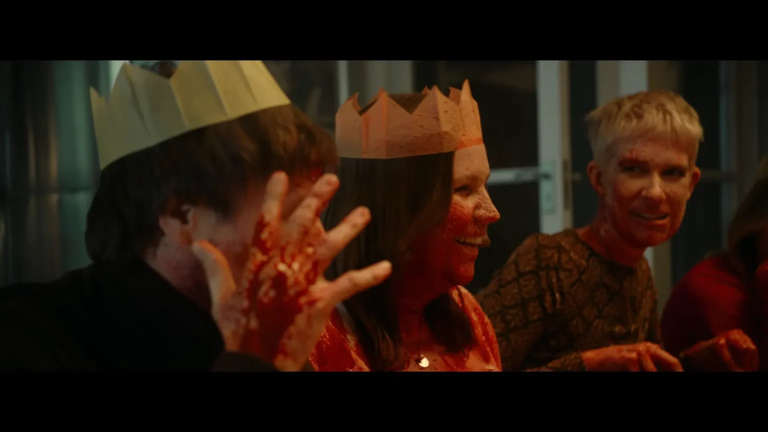 La pieza, producida en asociación con Grey London, se embarca en lo que parece ser una tradicional cena navideña en la que conversan sobre temas como una serie, la congestión vehicular o la lista de regalos. No obstante, lo llamativo está en que mientras van comiendo les van salpicando gotas de sangre en sus rostros.
