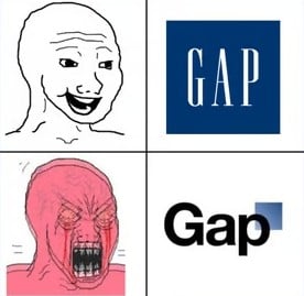 En octubre del 2010, la reconocida marca de ropa GAP presentó con bombos y platillos su nuevo logotipo. En su búsqueda por modernizar su estilo, la compañía decidió retirar su clásica caja azul para reemplazarla por un pequeño cuadrado degradado en la esquina.