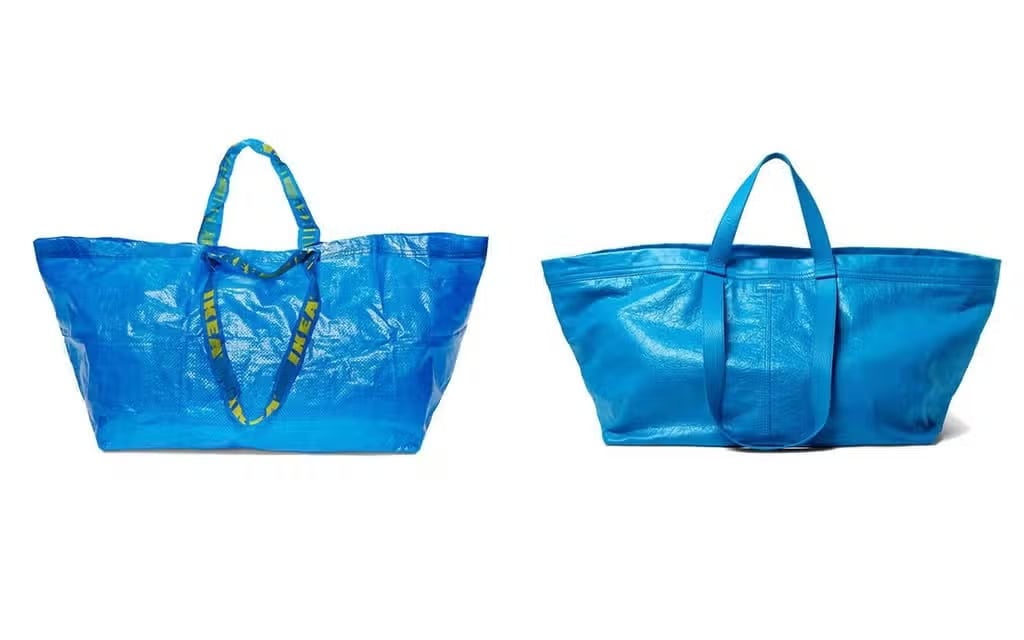 En 2018, Ikea respondió con ingenio a la incursión de Balenciaga en el mundo de los bolsos de lujo. La controversial Arena Extra-Large Shopper Tote Bag de la firma de moda, con un sorprendente parecido a las icónicas «bolsas azules» de Ikea, causó revuelo en las redes sociales. La creación, valorada en 2,005 dólares (7,501 soles), fue objeto de comparaciones por parte de los usuarios, quienes destacaron las similitudes visuales con la asequible bolsa sueca a 50 centavos de dólar.