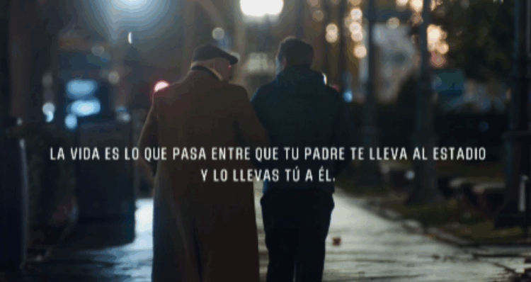 En el spot principal, dirigido por Gabe Ibáñez y producido por Bambina Films, se retrata la relación entre un padre y su hijo a través del fútbol, con saltos narrativos entre el pasado y el presente. La pieza construye su relato a partir de rituales compartidos que se repiten con el paso del tiempo. “La vida es eso que pasa entre que tu padre te lleva al estadio y lo llevas tú a él” es el claim con el que la organización refuerza la propuesta de la campaña.