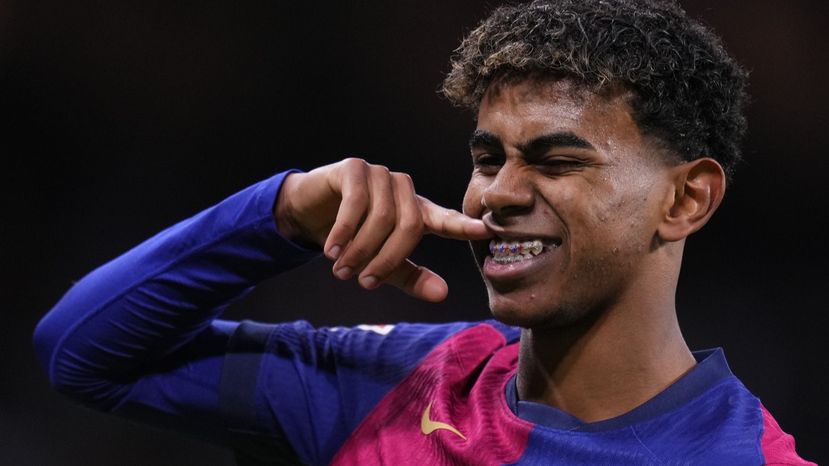 Tras anotar el tercer gol del partido, Lamine Yamal señaló sus dientes, mostrando unos brackets personalizados con los colores de su club, acción que podría estar vinculada a una estrategia de marca.