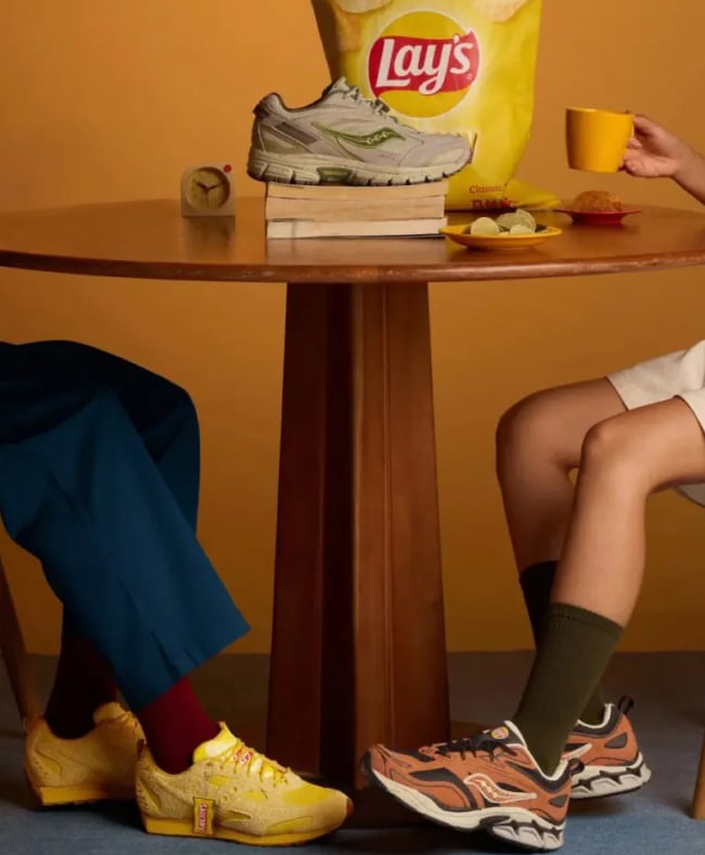 Recientemente, Lay’s también se ha asociado con Saucony en China para codiseñar tres modelos de zapatillas inspirados en las presentaciones de las papas fritas. Esta colaboración entre moda y gastronomía ha sido trabajada exclusivamente para China para conectar con dicho público.
