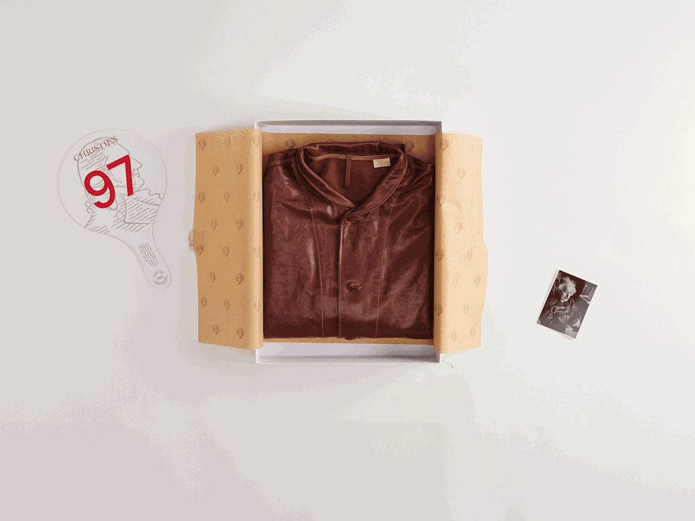 Respecto al packaging se indicó que incluye una réplica de la paleta de puja n° 97 utilizada para adquirir la pieza original en la subasta y una fotografía de Einstein usando la chaqueta.