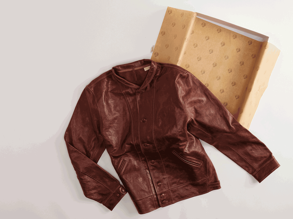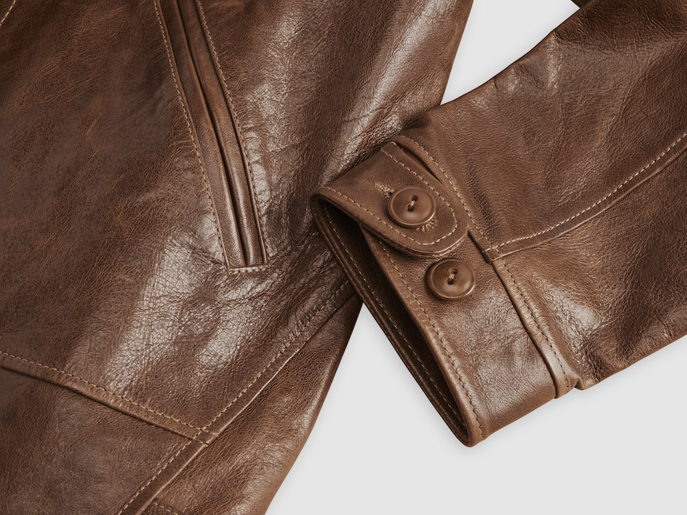 Esta réplica mantiene el cuello redondeado y los puños distintivos del modelo original, su corte cuadrado y corto. Además, tiene hebillas de latón con tiras ajustables en los laterales. Cada una de estas unidades se vende a 1200 euros y viene numerada a mano en la etiqueta.