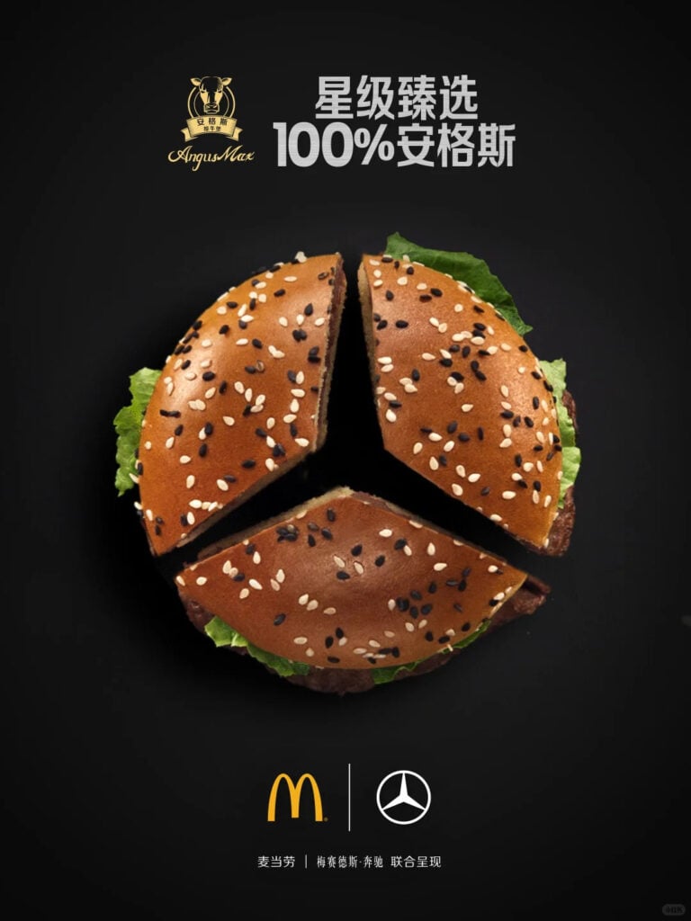 En China, ambas marcas protagonizaron una de las colaboraciones más inesperadas del año. Dos marcas que a primera vista parecen opuestas, una asociada con comida rápida y la otra con autos de lujo, se unieron bajo una misma campaña: “So Mc-Benz”, una jugada de marca que demuestra cómo el contraste también puede generar conexión.