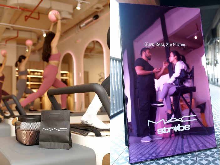 Como primera elección, MAC decidió brandear las instalaciones de Curva Studio, entregando giftbags en todas las clases durante una semana. Además, se realizó una clase de power pilates con 10 influencers invitadas quienes pudieron disfrutar de una masterclass con Miguel Urtecho, trainer de MAC Perú, y así aprender a utilizar el nuevo Strobe Liquid Blush.