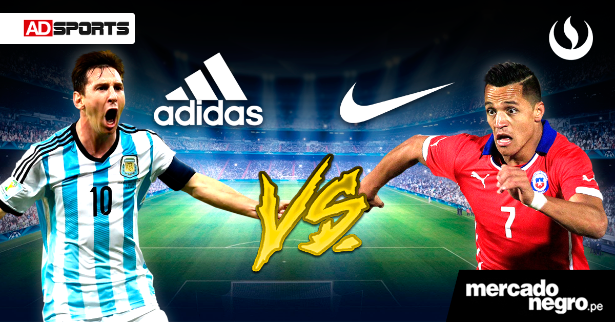 Los argentinos y chilenos vuelven a repetir la final de la Copa América del año pasado y con ellos un partido pero que se juega en otra cancha, la de Adidas y Nike, principales sponsors de Argentina y Chile respectivamente.