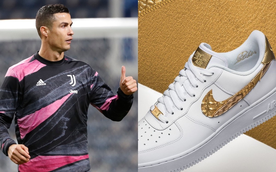 El futbolista presumió en sus redes sociales del modelo Air Force 1 CR7 Golden Patchworkpo, que tienen el característico blanco de la versión clásica con detalles en dorado y celebró que el lanzamiento tenga lugar en el mes de su cumpleaños.