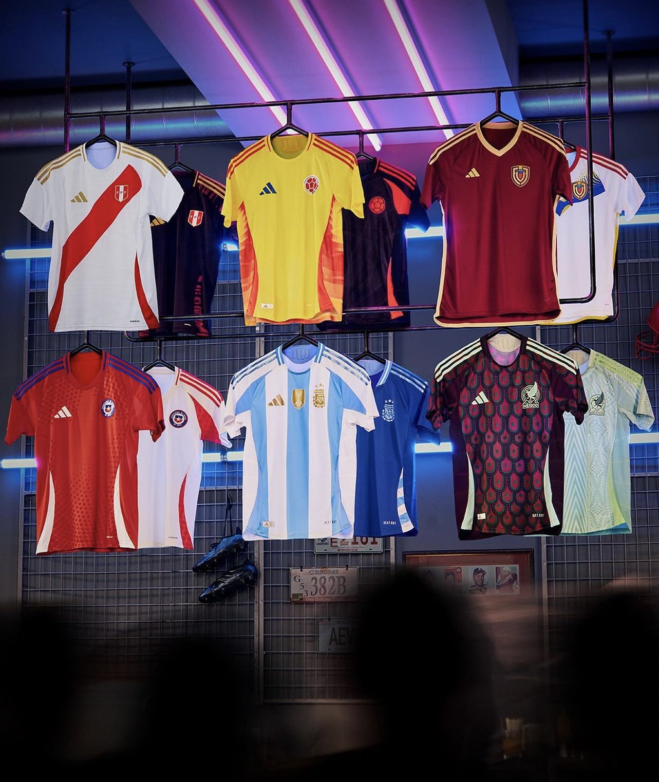 Adidas lidera con ocho equipos patrocinados, incluyendo a Argentina, Chile, Perú, Venezuela, Colombia, México, Jamaica y Costa Rica. Su diseño para la camiseta argentina combina las tradicionales franjas verticales en blanco y celeste con detalles en dorado, otorgándole un toque moderno y elegante.