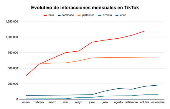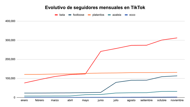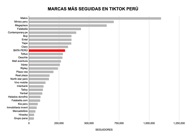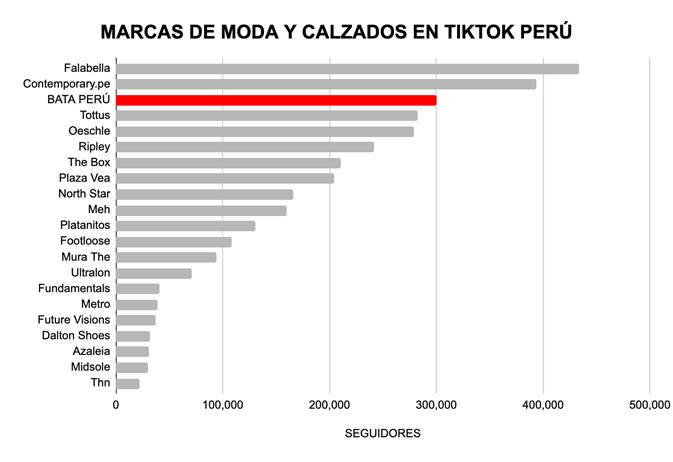 Este año, Bata ha logrado llegar a más de 300 mil seguidores, muy por encima de su competencia directa en el sector calzado, logrando llevar la delantera por más de 150 mil seguidores. Asimismo, la firma ha logrado posicionarse en el competitivo panorama de la moda en TikTok. La marca ahora figura en el Top 3 de marcas con más seguidores en el sector de moda y calzado a nivel nacional, compartiendo este privilegiado espacio junto a otros retailers como Falabella y Ripley.