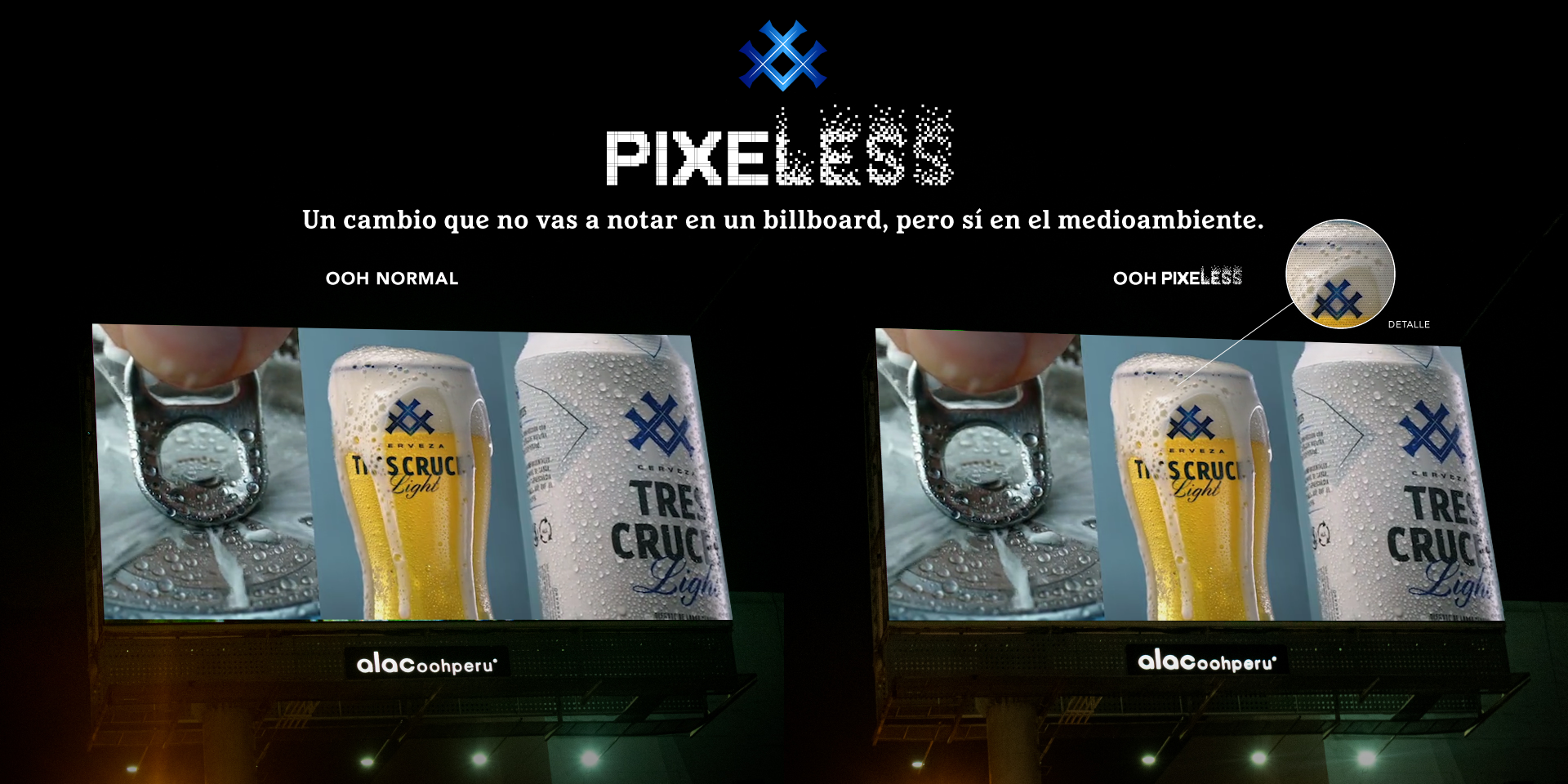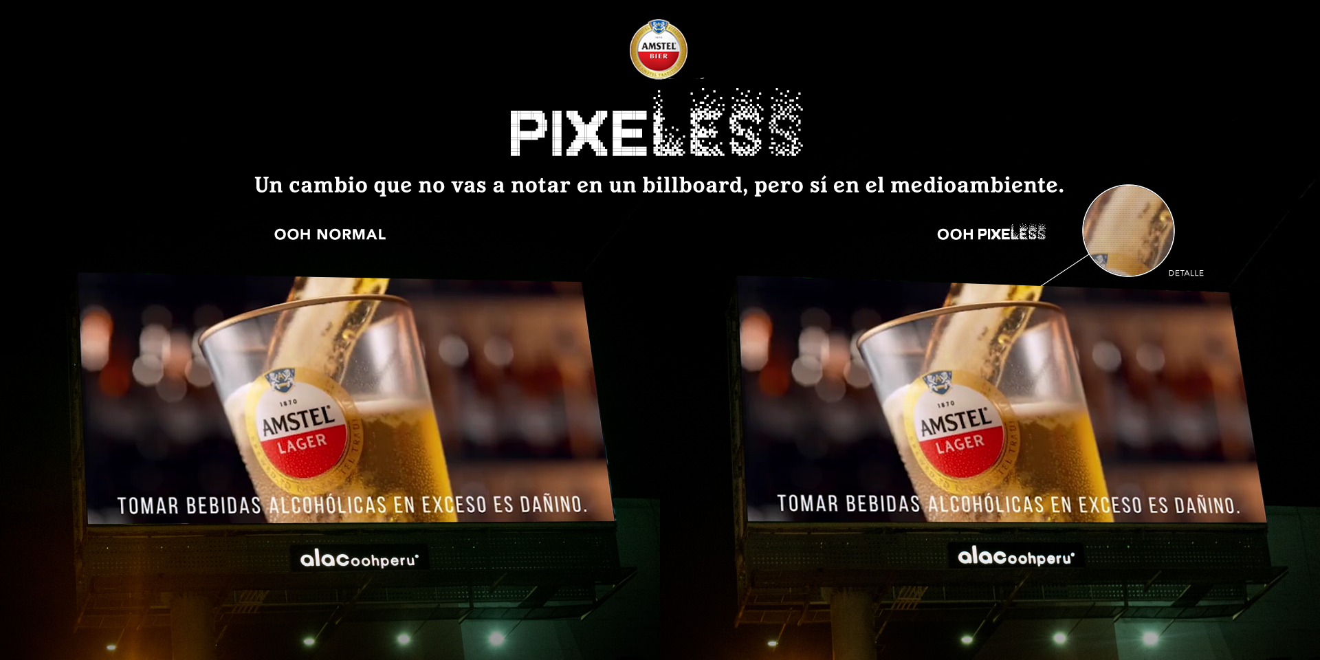 Amstel y Tres Cruces, principales marcas del grupo Heineken en Perú han desarrollado la primera acción sostenible en vía pública impulsada por una cervecera y lo lanza al mercado bajo el nombre de Pixeless, una estrategia disruptiva que reduce hasta en un 27,4 % el consumo eléctrico de cada aviso digital en exterior y con ello minimizar el impacto en el medio ambiente.